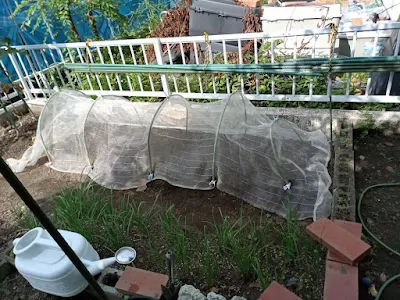 ところで昨日大根等の種を蒔きましたが、防虫ネットをかけるのがまだでした。もう一度水やりをしてから。と思っていたからです。